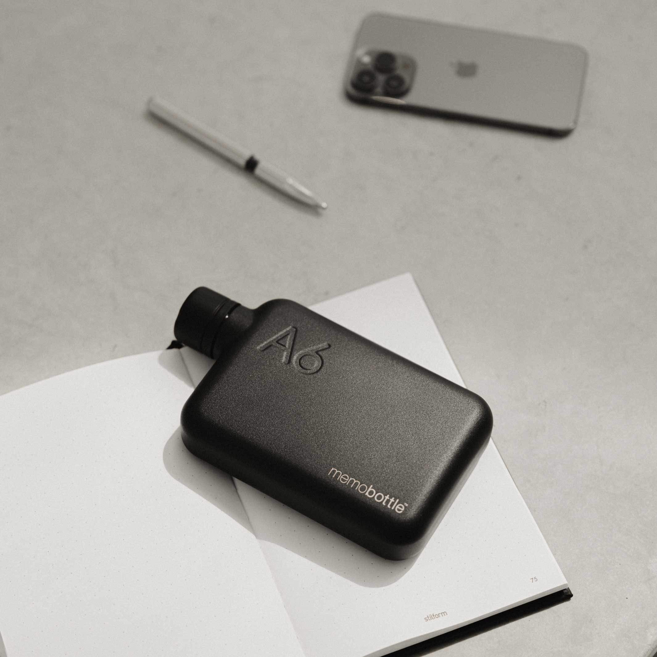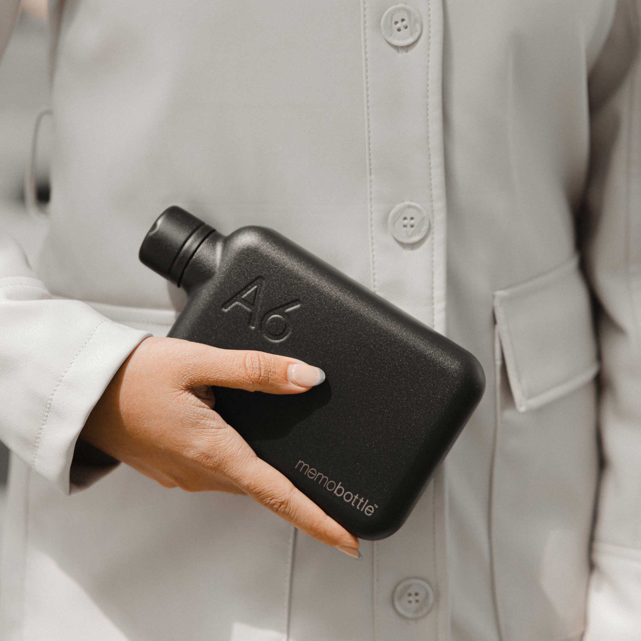 A6 Stainless Steel memobottle™ Black | slimline reusable WATER BOTTLE | 500 ml