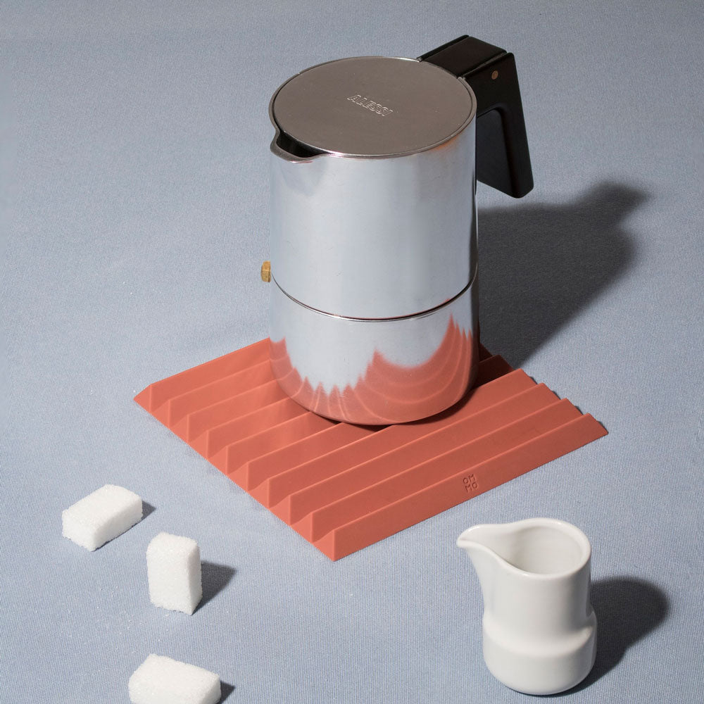 Le Flip Coaster - conçu par Shane Schneck pour Ommo - est conçu pour tenir fermement sur n'importe quelle surface de table tout en protégeant la table de la chaleur.