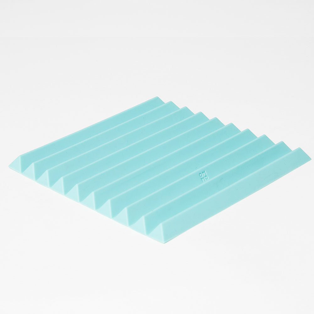 La géométrie en silicone résistant à la chaleur contient de petits aimants cachés qui maintiennent le dessous de verre enroulé afin qu'il puisse être rangé de manière très compacte. Beau, fonctionnel et innovant.