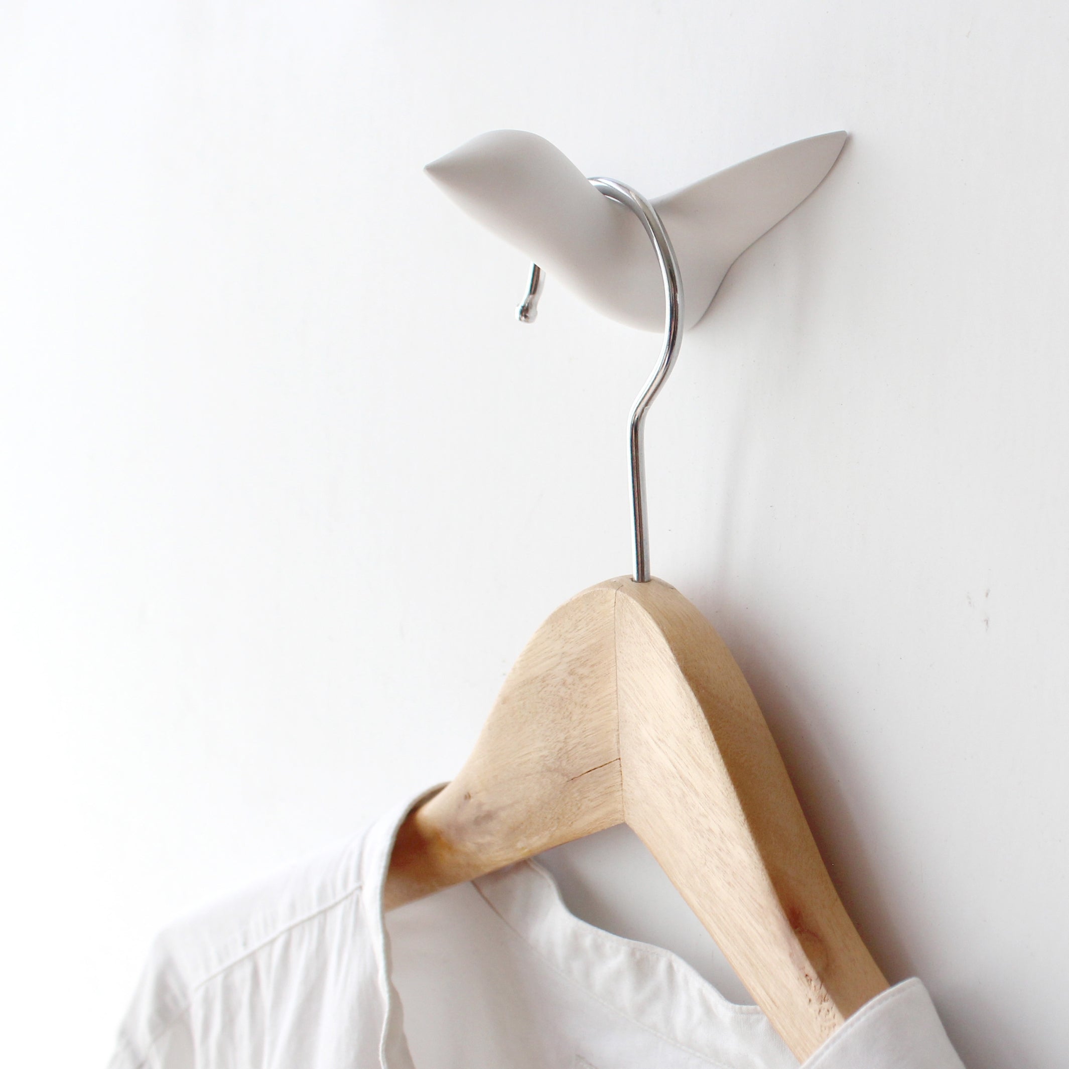 Der Mini Vogelschwarm ist für den alltäglichen Gebrauch als Garderobenhaken geeignet und besonders schön, wenn man ihn gerade nicht verwendet. Dadurch ist er Wandinstallation und Garderobe zugleich.