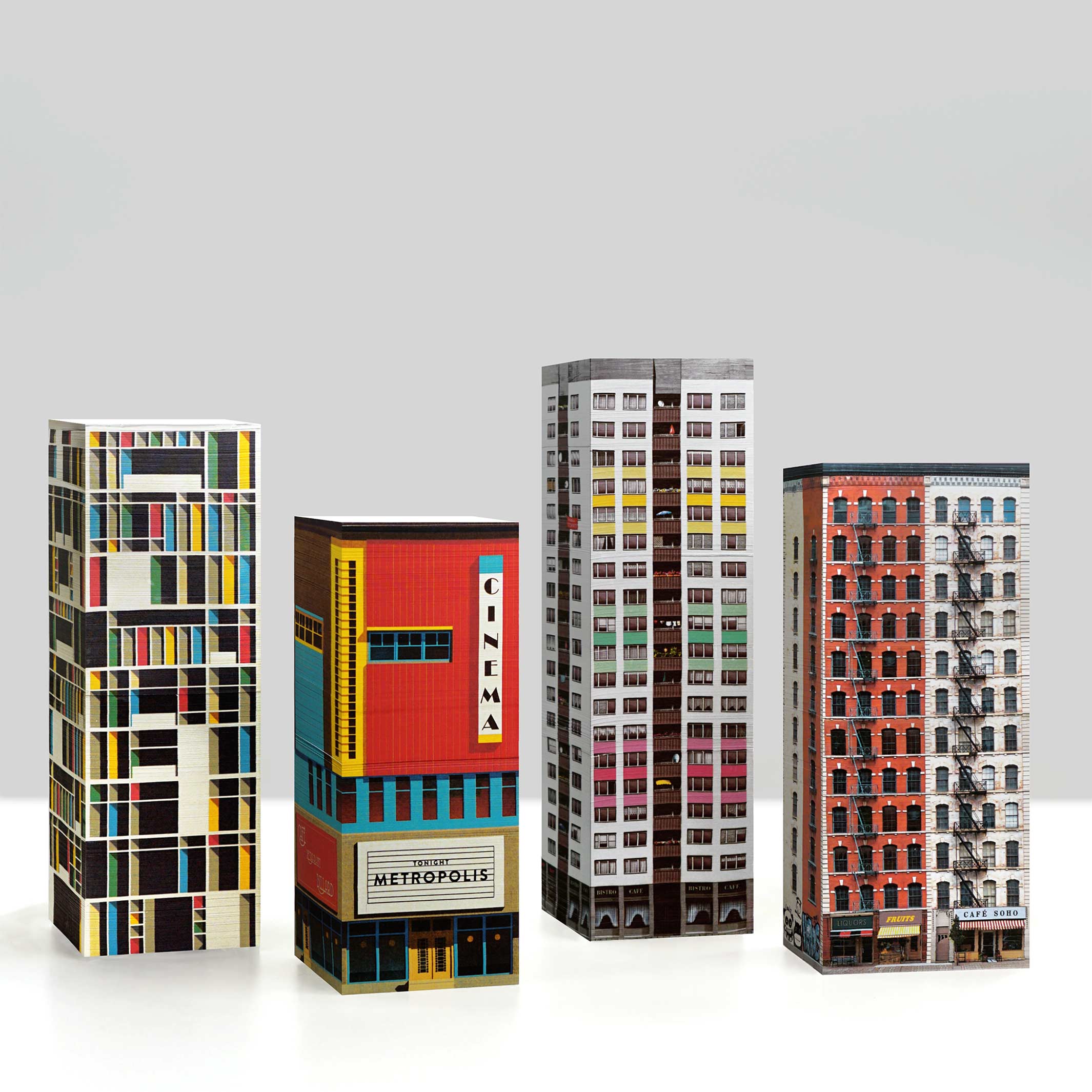 Die Form der Quader prägt zahlreiche ikonische Bauwerke: von Plattenbauten über Stadthäuser und Wolkenkratzer bis hin zum Bauhaus. Genau diese Ikonen der Architektur haben Gestalten's Notizzettelblöcke inspiriert. Frei interpretiert nach realen Vorbildern präsentieren die erste und zweite Edition der Paperscraper® beeindruckende Architekturmodelle im Maßstab 1:250.