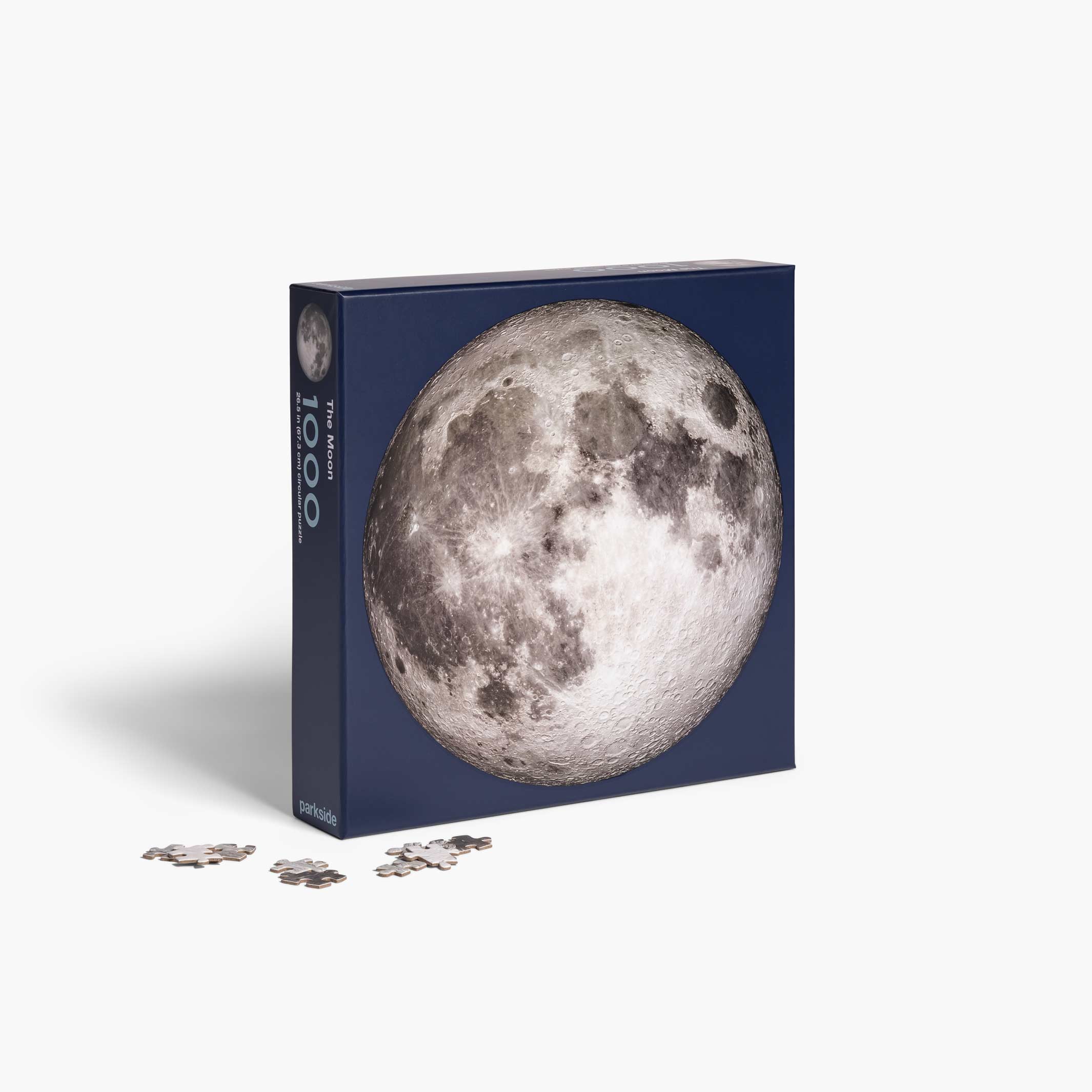 Dieses 1000-teilige, 67 cm (26,5") große, kreisförmige The Moon Puzzle von parkside aus Kanada zeigt die Rückseite des Mondes in unglaublichen Details. Das von der NASA zur Verfügung gestellte Bild ist das bisher klarste Bild des Mondes und zeigt selbst die kleinsten Krater in atemberaubender Klarheit.