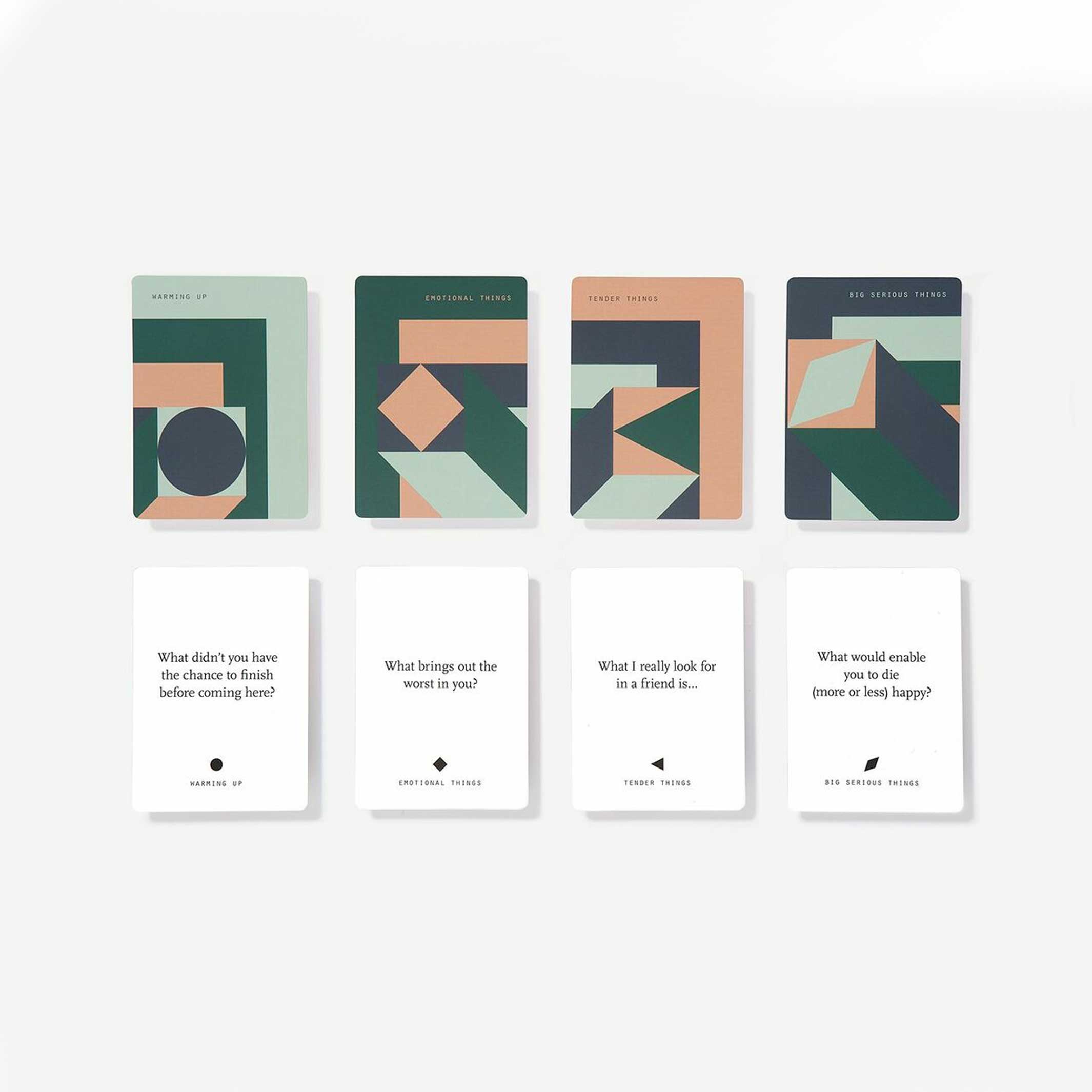 Dies ist ein Kartenspiel mit Fragen, die dafür sorgen, dass unsere Begegnungen richtig lustig und interessant werden. Die Fragen führen uns durch den idealen Gesprächsverlauf, von den alltäglichen Themen bis hin zu dem, was aufrichtig, tief und zärtlich ist.