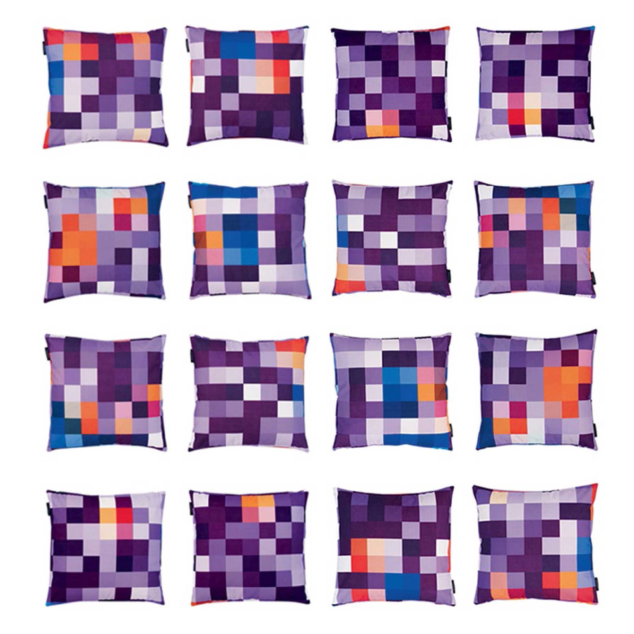 Das Pixel Venus Kissen ist Teil der "Pixel-Squaring of the Circle"-Kollektion von Zuzunaga. Die Venus-Linie besteht aus mehreren violetten, blauen und orangefarbenen Pixeln.