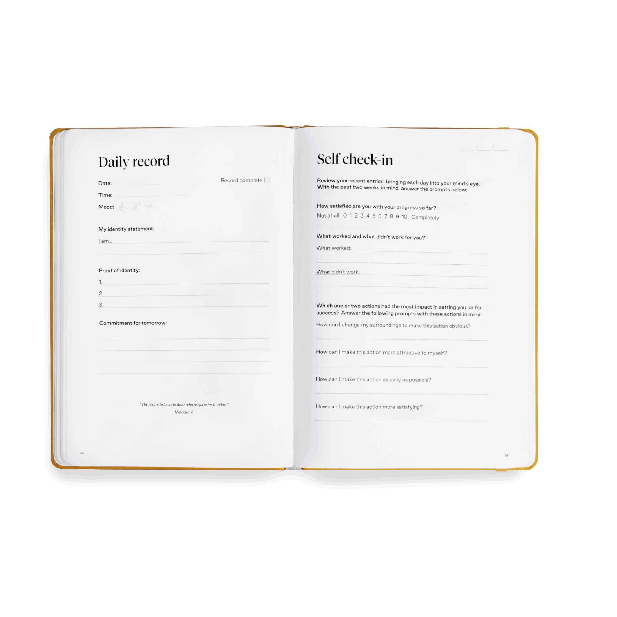 Die lebendige Farbvariante "Turmeric" strahlt Energie und Inspiration aus, perfekt, um dich täglich zu motivieren. Das Notizbuch enthält speziell gestaltete Seiten, die dir helfen, deine Gewohnheiten zu verfolgen, Fortschritte zu dokumentieren und reflektiert an deinen Zielen zu arbeiten. Durch strukturierte Abschnitte wird das tägliche Festhalten deiner Gewohnheiten zu einem effektiven Ritual, das dir hilft, diszipliniert und fokussiert zu bleiben. Wissenschaftlich untermauert und auf den Prinzipien der positiven Psychologie aufgebaut.